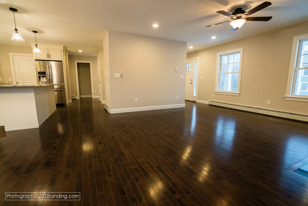 With the cloudy skies that came later in the day, this house really produced a dramatic sky that only Maine can produce. This House is stunning. Painted in a beautiful L.L Bean Green (not the official color, just what green I think it looks like) I can see this home housing a beautiful family of 3 or more. The open layout and first floor office with french doors is truly spectacular. A dark espresso hardwood floors flows through the entire first floor with classic white stair risers and bull nosed edges, this will truly give you that classic home feel.